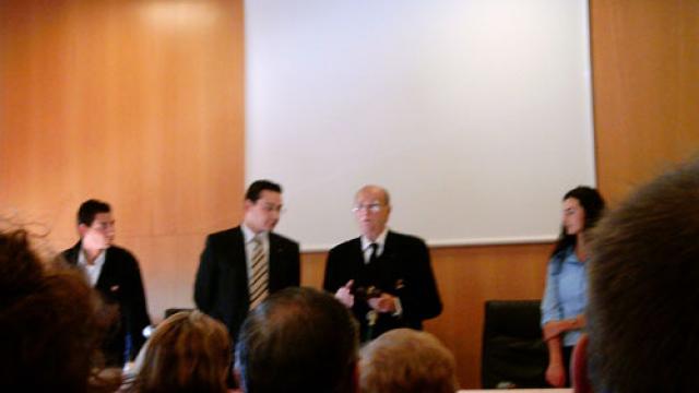 En mayo de 2004 organizamos una charla-coloquio con D. Gerardo Fernández Albor, con motivo de la ampliación de la Unión Europea a diez nuevos estados. Los estudiantes del módulo le hicieron entrega de una medalla, en agradecimiento por su contribución a la ampliación de la Unión Europea, como diputado europeo y como presidente del Comité Español por la Unión Paneuropea.